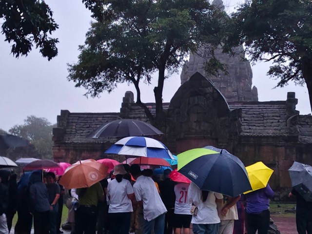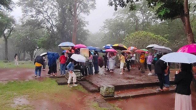 อำเภอเฉลิมพระเกียรติ // นักท่องเที่ยวพลาดชมอาทิตย์ขึ้น 15 ช่องประตูปราสาทเขาพนมรุ้ง ฝนฟ้าไม่เป็นใจ เผยไม่เสียดาย จะกลับมาชมอีกอยากเพราะอยากเห็นสักครั้ง