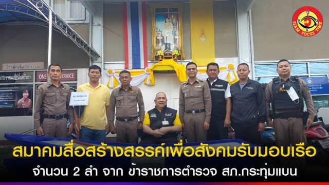 สมาคมสื่อสร้างสรรค์เพื่อสังคมรับมอบ เรือ จำนวน 2 ลำ จาก ข้าราชการตำรวจ สภ.กระทุ่มแบน