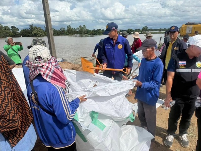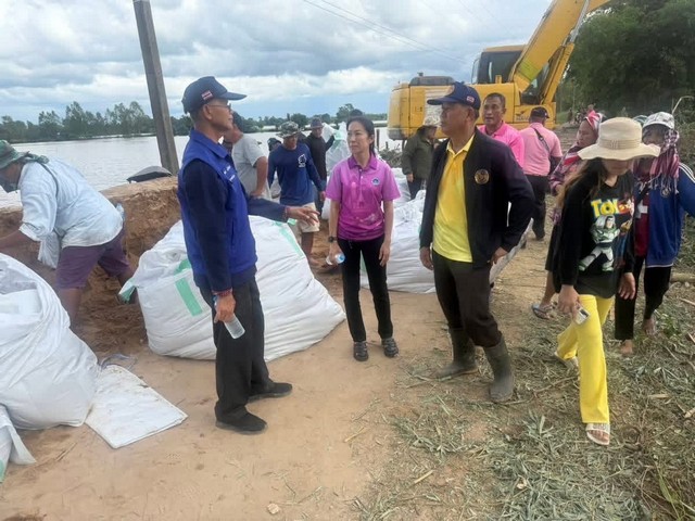 นายสุวัฒน์ เบ้าจังหาร นายอำเภอเสลภูมิ,ผู้อำนวยการอำเภอ ได้เข้าอำนวยการแก้ไขปัญหา โดยดำเนินการร่วมกับนายศักดิ์ศรี เนืองแก้ว นายกเทศมนตรีตำบลขวาว,อำนวยการท้องถิ่น/นายศักดา โพธิษา นายกองค์การบริหารส่วนตำบลนางงาม/นายสกลกลางชะนีย์ นายกองค์การบริหารส่วนตำบลนาเลิง/นายภักดี น่าบัณฑิต กำนันตำบลขวาว /นายพัฒนรักษ์ โคตบุตร กำนันตำบลนางาม พร้อมด้วยผู้ใหญ่บ้านฯลฯ /ส.ท./ส.อบต./ส.จ.ศศิธร พรหมชัยนันท์ ส.อบจ.ร้อยเอ็ด เขต อ.เสลภูมิ และพี่น้องประชาชน ช่วยกันทำแนวไม้ นำถุงบรรจุทราย(บิ๊กแบ็ก) ป้องกันน้ำไหลลงพื้นที่การเกษตร