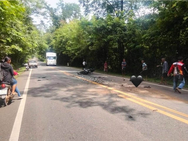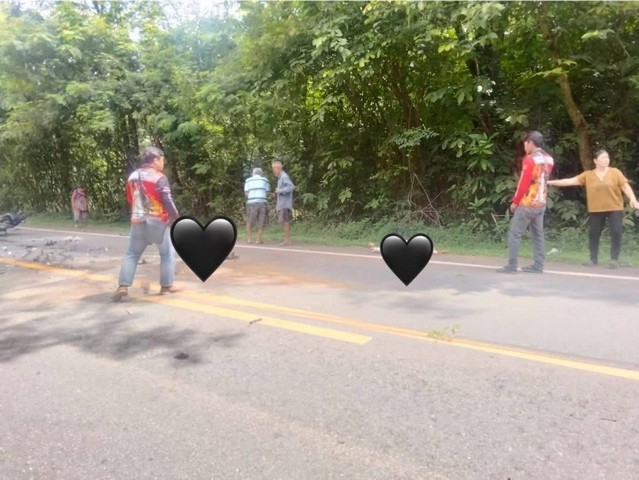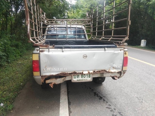 ที่เกิดเหตุพบรถกระบะ นิสสัน ฟรอนเทียร์ สีบรอนซ์เงิน ทะเบียน บต-8018 สมุทรปราการ ชนกับรถจักรยานยนต์ฮอนด้า ซีบีอาร์ ทะเบียน 2กข-8080 ร้อยเอ็ด สภาพรถทั้งสองคันพังยับเยิน ใกล้กันพบผู้บาดเจ็บสาหัสเป็นชาย 1 ราย และผู้เสียชีวิตในจุดเกิดเหตุเป็นหญิง 1 ราย
