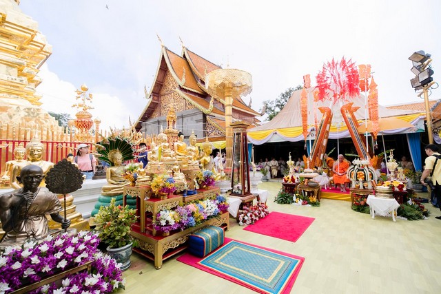 ในการนี้มีเจ้าอาวาสวัดพระธาตุดอยสุเทพราชวรวิหาร เป็นประธานในพิธีสงฆ์ และ พระพรหมสิทธิ เจ้าอาวาส วัดสระเกศ พระพรหมมงคลวัชโรดม วัดจองคำลำปาง พระพรหมวชิรโพธิวงศ์ วัดไทยพุทธคยา อินเดีย นายวีรพงศ์ ฤทธิ์รอด รองผู้ว่าราชการจังหวัดเชียงใหม่ และ คุณหยก กชพร เวโรจน์ เป็นประธานในพิธี พร้อมกันนี้ คุณหยกถวายภัตตาหารเพลแด่พระสงฆ์จำนวน 150 รูป