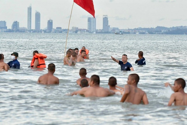 ศูนย์ฝึกทหารใหม่ กรมยุทธศึกษาทหารเรือ จัดกิจกรรมว่ายน้ำในทะเลเพื่อความคุ้นเคยให้กับทหารใหม่ ผลัด 2/68