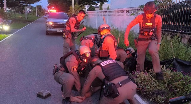 เมื่อเวลา 18.55 น.ของวันที่ 11 กันยายน 2568 ศูนย์วิทยุเมืองนายก ได้รับแจ้ง จากนางมาลัย อายุ 80 ปี มีชายคลุ้มคลั่งอาละวาด อยู่ในซอยศิลาทอง ซอย 2 ใกล้สระน้ำกลางหมู่บ้าน จึงได้ประสานสายตรวจรถยนต์สายตรวจรถจักรยานยนต์ ไปยังที่รับแจ้งเหตุ พบชายรูปร่างสูงใหญ่ทราบชื่อนายทิว อายุ 35 ปีมีอาการคลุัมคลั่งเดินอยู่บนถนนมีอาการเอะอะโวยวาย เจ้าหน้าที่สั่งให้นั่งลงกับพื้น นายทิวไม่ยอมนั่งหยิบก้อนหินก้อนใหญ่เข้าต่อสู้กับเจ้าหน้าที่ตำรวจ เจ้าหน้าที่ตำรวจจึงพุ่งเข้าชาร์ทตัวเนื่องจากนายทิวนั้นมีรูปร่างสูงใหญ่แรงเยอะ ประมาณ 10 นาที่ จึงได้ควบคุมตัวเอาไว้ได้และจะได้นำตัวไปส่งโรงพยาบาลนครนายกเพื่อทำการรักษาต่อไป