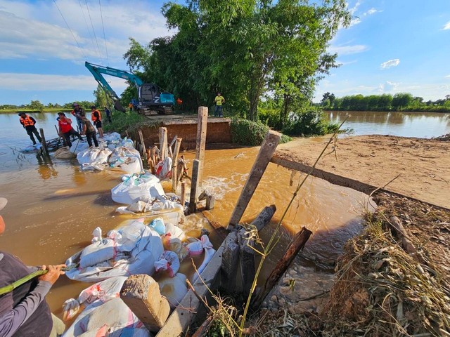ร้อยเอ็ด…พนังขาดอุดได้แล้ว…ผู้ว่าฯร้อยเอ็ด นำทีมเจ้าหน้าที่ผู้เกี่ยวข้อง อุดรอยรั่วพนังกั้นน้ำขาดเสลภูมิเรียบร้อย! ป้องกันน้ำเข้าท่วมพื้นที่ชุมชน