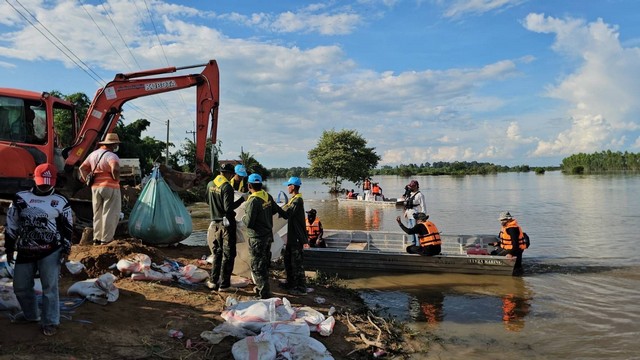 ร้อยเอ็ด…พนังขาดอุดได้แล้ว…ผู้ว่าฯร้อยเอ็ด นำทีมเจ้าหน้าที่ผู้เกี่ยวข้อง อุดรอยรั่วพนังกั้นน้ำขาดเสลภูมิเรียบร้อย! ป้องกันน้ำเข้าท่วมพื้นที่ชุมชน