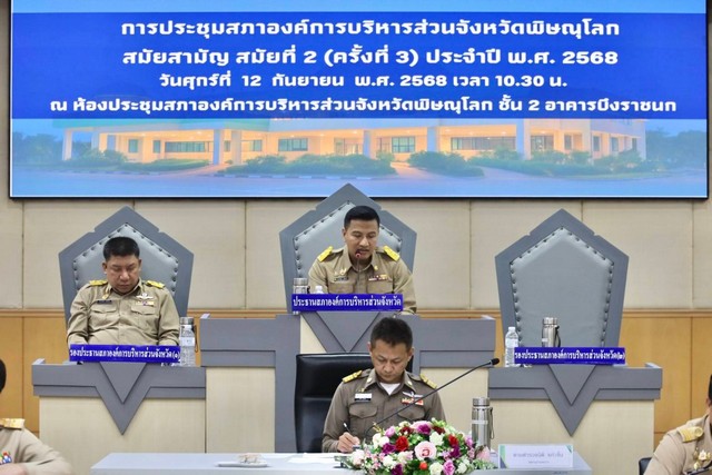 วันที่ 12 กันยายน 2568 นายศรายุทธ คชพงศ์ ประธานสภาองค์การบริหารส่วนจังหวัดพิษณุโลก เปิดประชุมสภาองค์การบริหารส่วนจังหวัดพิษณุโลก สมัยสามัญ สมัยที่ 2 (ครั้งที่ 3) ประจำปี พ.ศ.2568 ณ ห้องประชุมสภาองค์การบริหารส่วนจังหวัดพิษณุโลก ชั้น 2 อาคารบึงราชนก อำเภอวังทอง จังหวัดพิษณุโลก โดยมีสมาชิกสภาองค์การบริหารส่วนจังหวัดพิษณุโลก เข้าร่วมครบองค์ประชุม ส่วนฝ่ายบริหารมี นายมนต์ชัย วิวัฒน์ธนาฒย์ นายกองค์การบริหารส่วนจังหวัดพิษณุโลก พร้อมด้วย นายเชาวฤทธิ์ ฉายะกูล รองนายกองค์การบริหารส่วนจังหวัดพิษณุโลก คณะผู้บริหาร หัวหน้าส่วนราชการองค์การบริหารส่วนจังหวัดพิษณุโลก เจ้าหน้าที่ตำรวจ และผู้สังเกตการณ์เข้าร่วมประชุม