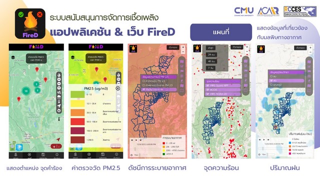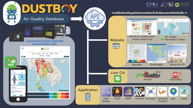 สำหรับด้านการรับมือและแก้ไขปัญหามลพิษทางอากาศ PM 2.5 อย่างยั่งยืน ได้สร้างสรรค์นวัตกรรมตรวจวัดค่าฝุ่น PM2.5 เพื่อให้ประชาชนได้เข้าถึงได้ง่าย เช่น ระบบติดตามค่าฝุ่น PM2.5 และคุณภาพอากาศประเทศไทย สำหรับประชาชน ผ่าน Line Official Account: Air Quality by CMU (@aircmu), Dustboy เครื่องวัดปริมาณฝุ่นละอองขนาดเล็กในอากาศด้วยระบบเซนเซอร์ รายงานสถานการณ์ฝุ่นแบบ Real Time ที่ติดตั้งทั่วประเทศ, FireD ระบบสนับสนุนการตัดสินใจในการบริหารจัดการเชื้อเพลิงชีวมวล นอกจากนี้ยังมีนวัตกรรมป้องกันตนเองจาก PM2.5 อย่างห้องปลอดฝุ่นและมุ้งสู้ฝุ่น ที่ใช้หลักการแรงดันอากาศความดันบวก นำอากาศที่ดีผ่านการกรองเข้ามาและปิดกั้นอากาศที่ไม่ดี ซึ่งมีคณะทำงานด้านวิชาการเพื่อสนับสนุนการแก้ไขปัญหาหมอกควันภาคเหนือ มช. เป็นหน่วยงานหลัก