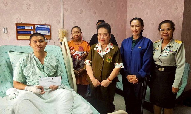 (สุรินทร์) ผู้แทนจากมูลนิธิสงเคราะห์ครอบครัวทหารผ่านศึกในพระราชูปถัมภ์สมเด็จพระศรีนครินทราบรมราชชนนี เยี่ยมทหารบาดเจ็บจากการปฏิบัติหน้าที่ชายแดนไทย – กัมพูชา ในพื้นที่จังหวัดสุรินทร์