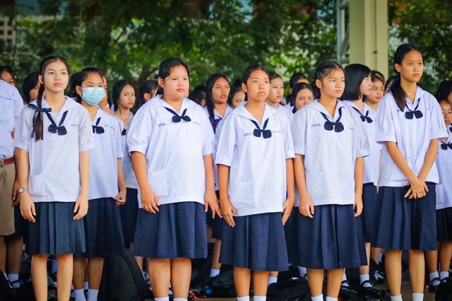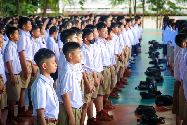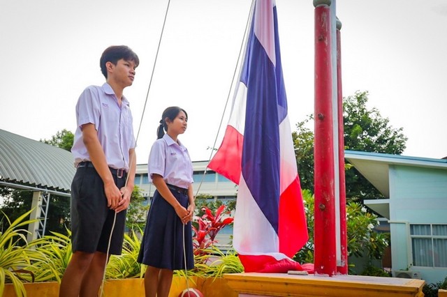 “ประเทศไทยรวมเลือดเนื้อชาติเชื้อไทย“ ทัพเรือภาคที่ 1 ร่วมร้องเพลงเคารพธงชาติไทยกับนักเรียนโรงเรียนมาบตาพุดพันพิทยาคาร เนื่องใน“วันธงชาติไทย” วันที่ 28 กันยายน