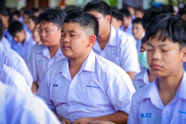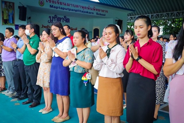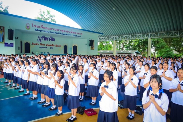 ทัพเรือภาคที่ 1 ร่วมกับคณะครูและนักเรียนโรงเรียนมาบตาพุดพันพิทยาคาร จ.ระยอง ร่วมกิจกรรมร้องเพลงเคารพธงชาติไทยร่วมกันอย่างพร้อมเพรียง บรรยากาศเต็มไปด้วยความสง่างามและความภาคภูมิใจในการเป็นพลเมืองไทย