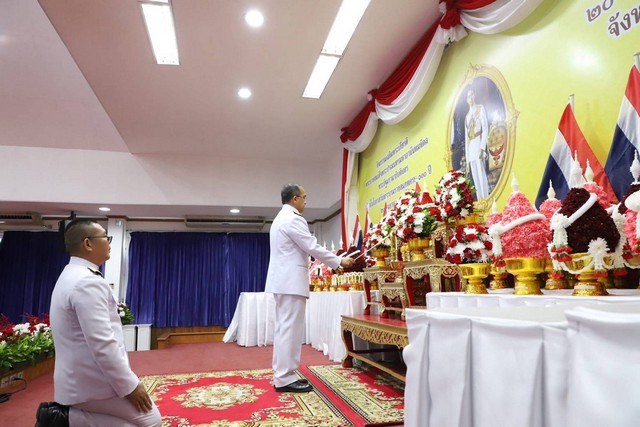 เมื่อวันที่ 20 ก.ย.68 เวลา 07.30 น. ที่ อาคารศาลารักษ์ปทุม ศาลากลางจังหวัดปทุมธานี นายสมคิด จันทมฤก ผู้ว่าราชการจังหวัดปทุมธานี นำส่วนราชการ หน่วยงาน องค์กรปกครองส่วนท้องถิ่น พ่อค้า ประชาชนทุกหมู่เหล่า ร่วมประกอบพิธีเจริญพระพุทธมนต์และทำบุญตักบาตรถวายพระราชกุศล และพิธีวางพุ่มดอกไม้ถวายราชสักการะ เฉลิมพระเกียรติพระบาทสมเด็จพระปรเมนทรมหาอานันทมหิดล พระอัฐมรามาธิบดินทร เนื่องในโอกาสวันพระบรมราชสมภพครบ 100 ปี 20 กันยายน 2568 โดยมี นายธวัช บัวพิทักษ์ ผู้พิพากษาหัวหน้าศาลจังหวัดปทุมธานี พ.อ. กิตติศักดิ์ วัฒนเดช รอง ผอ.รมน. จังหวัดปทุมธานี พ.ต.อ.วิวัฒน์ อัศวะวิบูลย์ ผกก.สภ.เมืองปทุมธานี ผศ.ดร.ศศิธร จันทมฤก นายกเหล่ากาชาดจังหวัดปทุมธานี นายพงศธร กาญจนะจิตรา รองผู้ว่าราชการจังหวัดปทุมธานี นายคมสัน ญาณวัฒนา รองผู้ว่าราชการจังหวัดปทุมธานี หัวหน้าส่วนราชการ ฝ่ายตุลาการ ข้าราชการทหาร ตำรวจ และประชาชนเข้าร่วมพิธีเพื่อแสดงความจงรักภักดี