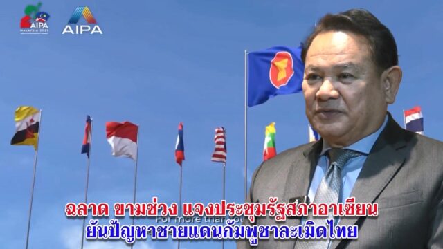 ฉลาด ขามช่วง แจงประชุมใหญ่สมัชชารัฐสภาอาเซียน AIPA ครั้งที่ 46 ตีตกเรื่องกัมพูชาเรียกร้องอาเชียนให้เปิดด่านไทย-กัมพูชา ปล่อยตัวเชลยศึก ยืนยันในที่ประชุมกัมพูชาทำผิดกฎหมายอาญาระหว่างประเทศ พร้อมนำเข้าแรงงานลาวเข้าไทย ทดแทนแรงงานขาดแคลน