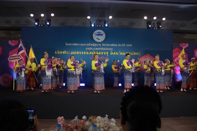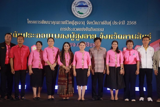 องค์การบริหารส่วนจังหวัดกาฬสินธุ์ จัดโครงการพัฒนาคุณภาพชีวิตผู้สูงอายุจังหวัดกาฬสินธุ์ ประจำปี 2568 ด้วยการประกวดการเต้นประกอบเพลงพื้นบ้านอีสานผู้สูงอายุ เพื่อสร้างเวทีแสดงออก เพิ่มคุณค่าทางสังคมแก่ผู้สูงอายุ ส่งเสริมอนุรักษ์วัฒนธรรมพื้นบ้านอีสาน และสร้างความสามัคคีในชุมชน โดยมีโรงเรียนผู้สูงอายุในจังหวัดกาฬสินธุ์ร่วมประกวดจำนวน 19 ทีม บรรยากาศเต็มไปด้วยสีสัน ความอบอุ่นและสนุกสนาน โดเฉพาะผู้สูงอายุที่ขึ้นเวทีประกวดและบรรดากองเชียร์เต็มห้องประชุม