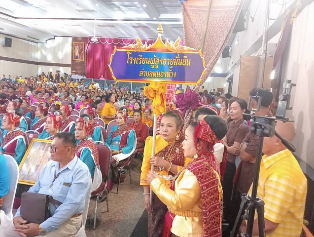 “ทั้งนี้ เพื่อเป็นการยกย่องเชิดชู และให้ผู้สูงอายุมีเวทีแสดงออก มีการพบปะ แลกเปลี่ยนประสบการณ์ มีส่วนร่วมกิจกรรมนันทนาการและสร้างสรรค์ เป็นแบบอย่างที่ดีให้กับบุตรหลานและอนุชนรุ่น ในขณะเดียวกัน ยังเป็นการส่งเสริมสุขภาพกายและสุขภาพจิตของผู้สูงอายุ หรือนักเรียนผู้สูงอายุ ผ่านกิจกรรมการเต้นประกอบเพลงพื้นบ้านอีสาน เพื่อสร้างเวทีแสดงออกและเพิ่มคุณค่าทางสังคมแก่ผู้สูงอายุ และเพื่อส่งเสริมอนุรักษ์วัฒนธรรมพื้นบ้านอีสาน และสร้างความสามัคคีในชุมชน โดยการประกวดการเต้นประกอบเพลงพื้นบ้านอีสานผู้สูงอายุ โดยวันนี้เป็นการแข่งขันในรอบรอบชิงชนะเลิศ ทั้งหมด 19 ทีม ชิงรางวัลและเงินรางวัลดังนี้ รางวัลชนะเลิศ เงินรางวัล 15,000 บาท, รางวัลรองชนะเลิศอันดับ 1 เงินรางวัล 12,000 บาท, รางวัลรองชนะเลิศอันดับ 2 เงินรางวัล 10,000 บาท, รางวัลรองชนะเลิศอันดับ 3 เงินรางวัล 8,000 บาท, รางวัลรองชนะเลิศอันดับ 4 เงินรางวัล 6,000 บาท และรางวัลชมเชย 13 รางวัลๆละ 4,000 บาท รวมเงินรางวัลทั้งสิ้น 107,000 บาท” นางเฉลิมขวัญกล่าวในที่สุด