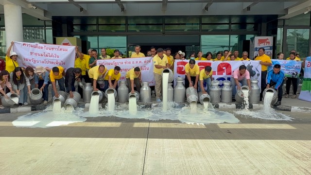 เมื่อวันที่ 23 กันยายน 68 ผู้สื่อข่าวรายงานว่าที่ องค์การส่งเสริมกิจการโคนมแห่งประเทศไทย (อ.ส.ค.) ต.คลองหนึ่ง อ.คลองหลวง จ.ปทุมธานี ชาวสมาชิกสหกรณ์สมาชิกชุมนุมสหกรณ์นมไทย – เดนมาร์ค จำกัด (เขตภาคกลาง) จำนวน 15 สหกรณ์กว่า 100 รายที่ได้นำนมสดมาเทบริเวณหน้า องค์การส่งเสริมกิจการโคนมแห่งประเทศไทย (อ.ส.ค.) พร้อมนำป้ายมายืนประท้วงหลังได้รับผลกระทบจากหนี้ค้างค่าน้ำนมดิบของ องค์การส่งเสริมกิจการโคนมแห่งประเทศไทย(อ.ส.ส.ค.) กับ สหกรณ์ จำนวนเงินทั้งสิ้นกว่า 600 กว่าล้านบาท โดยมี นายธีระชัย เกรียงไกรเวคิน ประธานกรรมการชุมนุมสหกรณ์นมไทย – เดนมาร์ค จำกัด ยื่นหนังสือพร้อมกับเทนมเพื่อประท้วงถึงเรื่องดังกล่าว