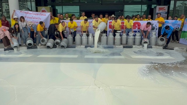 ปทุมธานี ชาวสมาชิกสหกรณ์สมาชิกชุมนุมสหกรณ์นมไทย – เดนมาร์ค จำกัด เขตภาคกลาง จำนวน 15 สหกรณ์กว่า 100 ราย เทนมประท้วงหลัง อ.ส.ค.ติดหนี้ กว่า600ล้าน