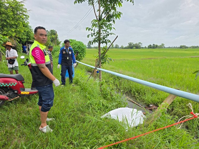 อำเภอกระสัง//ญาติระงมเห็นสองสามีภรรยาถูกไฟฟ้าช็อตเสียชีวิตคาร่องน้ำในสวนตัวเองขณะกำลังไปดักปลา จนท.ตรวจสอบพบเป็นไฟฟ้าเกษตรต่อมาจากถนน แล้วต่อสายไปเชื่อมกับปั๊มน้ำ คาดสายไฟฟ้าที่ต่อลงมาชำรุดแล้วไปโดนเสาเหล็กซึ่งมีน้ำเขาอยู่ ทำให้กระแสไฟรั่วลงมาโดนสองสามีภรรยาจนเสียชีวิต