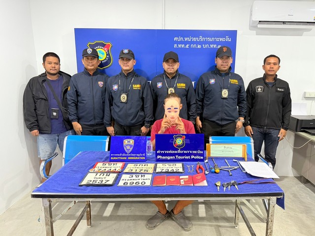 เมื่อเวลา 11:50 น. วันที่ 24 ก.ย. 2568 เจ้าหน้าที่ตำรวจท่องเที่ยวเกาะพะงัน ภายใต้การอำนวยการของ พล.ต.ท.ศักย์ศิรา เผือกอ่ำ ผู้บัญชาการตำรวจท่องเที่ยว (ผบช.ทท.) สั่งการให้ พ.ต.ท.วินิจ บุญชิต สว.ทท.5 กก.2 บก.ทท.3 พร้อมเจ้าหน้าที่ตำรวจท่องเที่ยวเกาะพะงัน ประสาน สภ.เกาะพะงัน,ตรวจคนเข้าเมืองเกาะพะงัน , นปภ สุราษฏร์ธานี,ร่วมจับกุม นายทิโมเฟย(Mr. Timofei) อายุ 30 ปี สัญชาติรัสเซีย บริเวณซอยไม่มีชื่อตรงข้ามร้าน Deli Devi หมู่ 5 ตำบลเกาะพะงัน จังหวัดสุราษฎร์ธานี พร้อมของกลางรถจักรยานยนต์ 10 คัน พร้อมทั้ง โดยแจ้งข้อหา “เป็นบุคคลต่างด้าวประกอบธุรกิจโดยไม่ได้รับอนุญาต (รถเช่า)” และ “เป็นบุคคลต่างด้าวทำงานโดยไม่มีใบอนุญาตทำงาน”