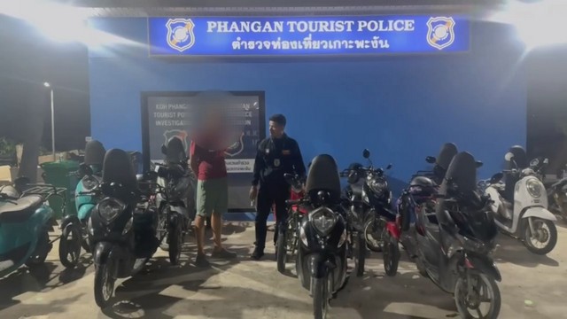 ตำรวจท่องเที่ยวเกาะพะงันรวบหนุ่มรัสเซีย กร่างแย่งอาชีพ เปิดธุรกิจให้เช่ารมอเตอร์ไซค์เถื่อน ยึดของกลาง มูลค่าครึ่งล้าน