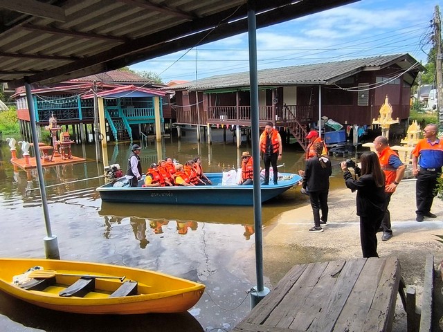 และประชานามัยพิทักษ์สภากาชาดสภากาชาดไทย ข้าราชการ ทหาร ตำรวจ ผู้นำชุมชน และครอบครัวผู้ที่ได้รับผลกระทบจำนวน 1255 ครัวเริอนเข้าร่วมในพิธีรับมอบชุดธารน้ำใจบรรเทาทุกข์ผู้ประสบภัยเป็นจำนวนมาก พร้อมนำสิ่งของเครื่องใช้ลงเรือ 3 ลำนำไปมอบชุดธารน้ำใจผู้ประสบภัย หมู่ที่ 7 ตำบลบางอ้อ อำเภอบ้านนา จังหวัดนครนายก