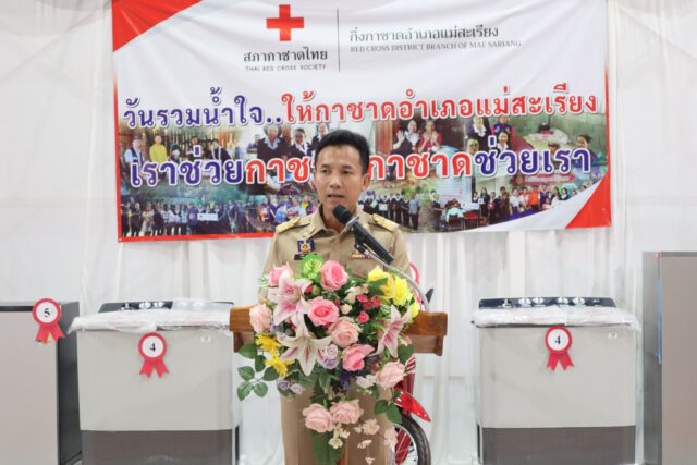 . นายวรศักดิ์ พานทอง นายอำเภอแม่สะเรียง เป็นประธานในพิธีเปิดงานวันรวมน้ำใจสู่กาชาด ประจำปี 2568 โดยมี นางพิทยา พานทอง นายกกิ่งกาชาดอำเภอแม่สะเรียง พร้อมด้วย คณะกรรมการกิ่งกาชาดอำเภอแม่สะเรียง หัวหน้าส่วนราชการ ผู้บริหารองค์กรปกครองส่วนท้องถิ่น กำนัน และผู้ใหญ่บ้าน เข้าร่วมกิจกรรม