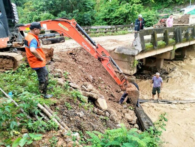 ทางหลวงชนบทได้นำเครื่องจักรเข้านำเนินการเปิดเส้นทาง ตักดินที่สไลด์ปิดทับเส้นทางออก เป็นที่เรียบร้อย ในส่วนของ บริเวณคอสะพานบ้านกอมูเดอ ที่ถูกกระแสน้ำป่ากัดเซาะทางหลวงชนบทก็ได้ดำเนินการถมหินลูกรังบริเวณคอสะพานเบื้องต้น เพื่อ แก้ไขให้ราษฏรในพื้นที่สามารถสัญจรไปมาได้