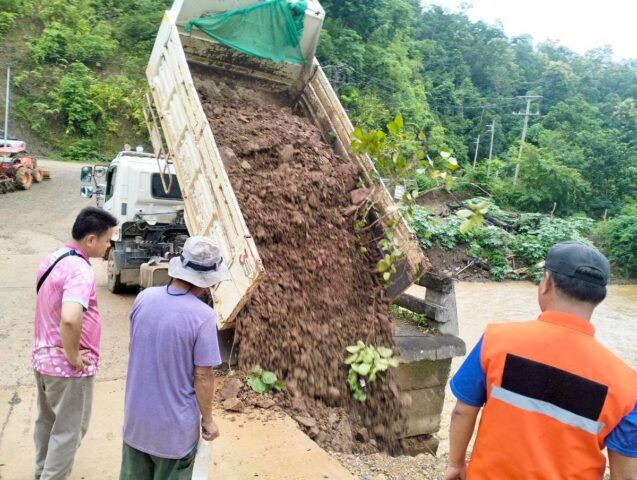 ทางหลวงชนบทได้นำเครื่องจักรเข้านำเนินการเปิดเส้นทาง ตักดินที่สไลด์ปิดทับเส้นทางออก เป็นที่เรียบร้อย ในส่วนของ บริเวณคอสะพานบ้านกอมูเดอ ที่ถูกกระแสน้ำป่ากัดเซาะทางหลวงชนบทก็ได้ดำเนินการถมหินลูกรังบริเวณคอสะพานเบื้องต้น เพื่อ แก้ไขให้ราษฏรในพื้นที่สามารถสัญจรไปมาได้