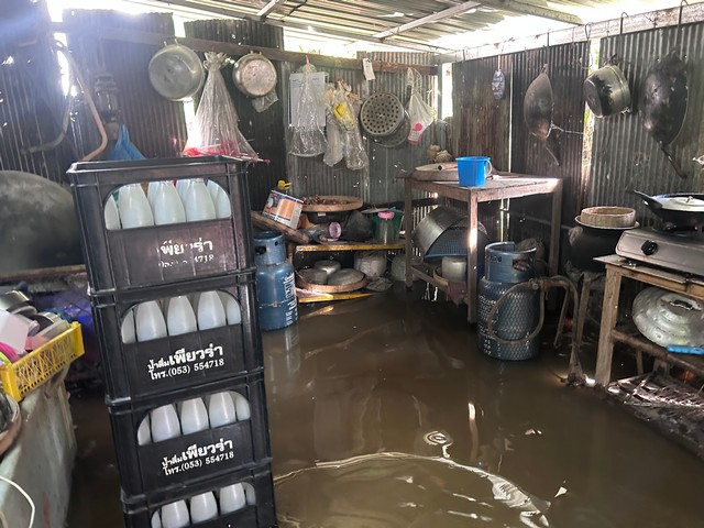 ภายหลังเกิดฝนตกหนักต่อเนื่อง ส่งผลให้น้ำเอ่อล้นเข้าบ้านเรือนประชาชนบางส่วน