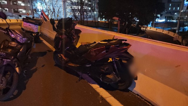 เมื่อวันที่ 28 กันยายน 2568 เวลา 03.00 น. ร.ต.ท.วิทวัส ม่วงโพธิ์เงิน ร้อยเวรสอบสวน สภ.ประตูน้ำจุฬาลงกรณ์ ได้รับแจ้งเกิดรเหตุถจักรยานยนต์เสียหลัก ชนราวสะพานต่างระดับหน้าศูนย์การค้าฟิวเจอร์พาร์ครังสิต ร่างกระเด็นร่วงกระแทกพื้น หลังได้รับแจ้งจึงประสานเจ้าหน้าที่ป่อเต็กตึ๊งเข้าตรวจสอบที่เกิดเหตุ