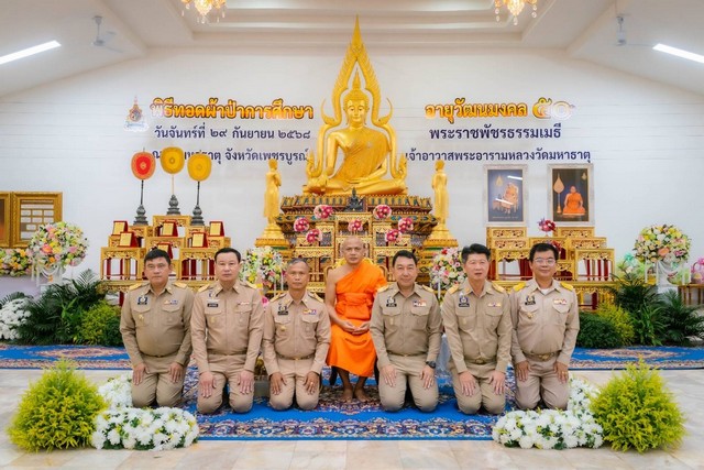 เมื่อเวลา 09.19 น. วันที่ 29 ก.ย. 2568 ที่ศาลาสัฏฐยานุสรณ์ วัดมหาธาตุ พระอารามหลวง อ.เมืองเพชรบูรณ์ จ.เพชรบูรณ์ บรรยากาศเต็มไปด้วยความศรัทธาและชื่นมื่น ในพิธีทอดผ้าป่าการศึกษา เนื่องในงานอายุวัฒนมงคล 50 ปี พระราชพัชรธรรมเมธี เจ้าคณะจังหวัดเพชรบูรณ์