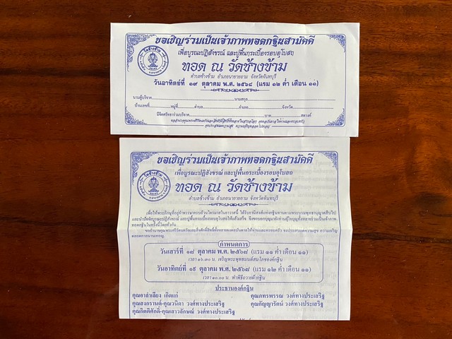 จึงขอบอกบุญมายังท่านผู้ใจบุญทั้งหลายร่วมเป็นเจ้าภาพทอดกฐินในครั้งนี้โดยทั่วกัน 🙏ขออำนาจคุณพระศรีรัตนไตรและสิ่งศักดิ์สิทธิ์ทั้งหลายจงดลบันดาลให้ท่านและครอบครัวจงประสบแต่ความสุขความเจริญตลอดกาลนานเทอญ ซึ่งเจ้าภาพซึ่งเป็นประธานองค์กฐินนั้นได้แก่ คุณอาลำเลียง เกิดแก่ คุณสงกรานต์และคุณวนิดา วงศ์ทางประเสริฐ คุณกิตติศักดิ์ คุณเสาวลักษณ์ วงศ์ทางประเสริฐ คุณภทรพรรณ วงค์ทางประเสริฐ คุณกัญญารัตน์ วงศ์ประเสริฐ