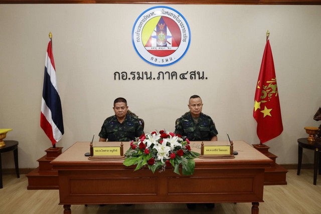 วันนี้ (30 กันยายน 2568) ที่ศาลาพิณประเสริฐ กองอำนวยการรักษาความมั่นคงภายในภาค 4 ส่วนหน้า ค่ายสิรินธร ตำบลเขาตูม อำเภอยะรัง จังหวัดปัตตานี พลโท ไพศาล หนูสังข์ แม่ทัพภาคที่ 4/ผู้อำนวยการรักษาความมั่นคงภายในภาค 4 (ท่านเก่า) ซึ่งได้รับพระกรุณาโปรดเกล้าฯ ให้ดำรงตำแหน่งสูงขึ้นเป็นที่ปรึกษาพิเศษกองทัพบก ได้กระทำพิธีส่งมอบตำแหน่งผู้อำนวยการรักษาความมั่นคงภายในภาค 4 ให้แก่ พลตรี นรธิป โพยนอก แม่ทัพภาคที่ 4/ผู้อำนวยการรักษาความมั่นคงภายในภาค 4 (ท่านใหม่) โดยมีพิธีถวายสักการะสิ่งศักดิ์สิทธิ์ภายในค่ายสิรินธร การส่งมอบธงประจำหน่วย และเอกสารรับ–ส่งหน้าที่อย่างสมเกียรติ ท่ามกลางผู้บังคับบัญชาระดับสูง นายทหารชั้นผู้ใหญ่ ผู้บังคับหน่วยขึ้นตรง หัวหน้าส่วนราชการ และกำลังพลในสังกัดเข้าร่วมพิธีอย่างพร้อมเพรียง