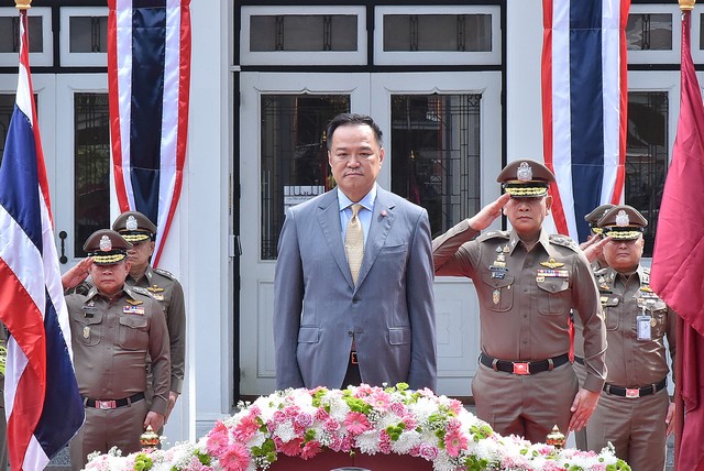 วันนี้ (1 ตุลาคม 2568) เวลา 13.00 น. พล.ต.อ.กิตติ์รัฐ พันธุ์เพ็ชร์ ผู้บัญชาการตำรวจแห่งชาติ (ผบ.ตร.) ให้การต้อนรับ นายอนุทิน ชาญวีรกูล นายกรัฐมนตรีและรัฐมนตรีว่าการกระทรวงมหาดไทย ในโอกาสเดินทางมามอบนโยบายการปฏิบัติราชการแก่ข้าราชการตำรวจที่ร่วมโครงการสัมมนาผู้บริหารระดับผู้บัญชาการหรือเทียบเท่า และผู้บังคับการหรือเทียบเท่า ประจำปีงบประมาณ พ.ศ.2569 โดยมี รอง ผบ.ตร., จเรตำรวจแห่งชาติ (จตช.), ผู้ช่วย ผบ.ตร., รอง จตช. พร้อมด้วยข้าราชการตำรวจระดับผู้บัญชาการหรือเทียบเท่า จำนวน 44 นาย และผู้บังคับการหรือเทียบเท่า จำนวน 294 นาย รวม 338 นาย ร่วมให้การต้อนรับและรับฟังนโยบาย ณ ห้องแจ้งยอดสุข ชั้น 3 อาคารศูนย์ฝึกอบรมพัฒนาบุคลากรและสวัสดิการ สำนักงานตำรวจแห่งชาติ