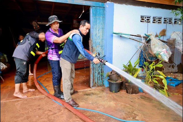 พิษณุโลก อบจ.พิษณุโลก ส่งเจ้าหน้าที่พร้อมรถน้ำช่วยทำความสะอาดบ้านเรือนประชาชนพร้อมแจกจ่ายน้ำอุปโภคบริโภคให้ผู้ทีประสบภัยน้ำป่าไหลหลากใน ต.บ้านดง อ.ชาติตระการ