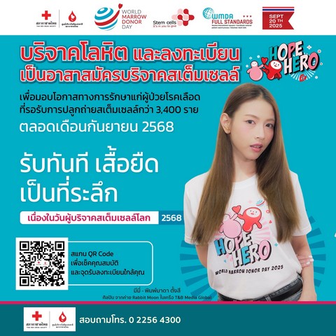 เคลลี่ “พรรณิภา วงษาชัย” และ มีมี่ “พิมพ์มาดา ตั้งสี” สองตัวแทนศิลปินวง DaruNi ค่าย Rabbit Moon ในเครือ บริษัท T&B Media Global เชิญชวนผู้ใจบุญร่วมเป็น “Hope Hero” เพราะทุกคน…คือฮีโร่ ชวนร่วมบริจาคโลหิต ศูนย์บริการโลหิตแห่งชาติ สภากาชาดไทย เฉลิมฉลองวันผู้บริจาคสเต็มเซลล์โลก 2568 ภายใต้ พร้อมกับลงทะเบียน เป็นอาสาสมัครบริจาคสเต็มเซลล์ เพิ่มโอกาสการรักษาผู้ป่วยโรคเลือด ตลอดเดือนกันยายน 2568 ณ ศูนย์บริการโลหิตแห่งชาติ สถานีกาชาด 11 วิเศษนิยม (บางแค) และภาคบริการโลหิตแห่งชาติ 8 แห่ง
