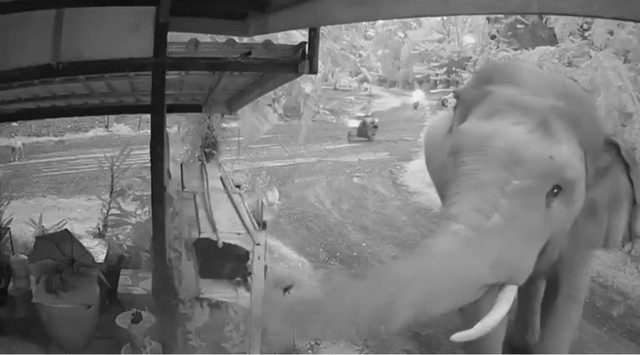 นครนายก คลิปช้างป่าพลายสาริกาหิวแวะร้านขายอาหารตามสั่ง ไม่ทำร้ายใคร ชุดผลักดันไล่เข้าป่า