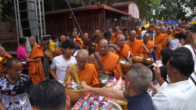 หนองบัวลำภู-สืบสานประเพณีตักบาตรเทโวโรหนะวัดสันติธรรมบรรพต (วัดภูน้อย)