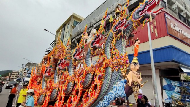 อำเภอเมืองสงขลา จังหวัดสงขลา โดยเรือพระ และขบวนเรือพระ จากหลากหลายวัดในพื้นที่จังหวัดสงขลา ได้เริ่มทยอยเดินทางเข้าสู่ตัวเมืองสงขลาตั้งแต่ช่วงเช้า เพื่อให้พี่น้องประชาชนพุทธศาสนิกชน ได้ยลโฉม และได้ชมความสวยงามอย่างใกล้ชิด ซึ่งแต่ละวัดได้มีการประดับตกแต่งออกมาด้วยความวิจิตรอลังการ โดยจะอัญเชิญ “พระพุทธรูป” หรือ “พระพุทธสิหิงค์จำลอง” ขึ้นประดิษฐานบน “เรือพระ” ขนาดใหญ่ ที่ตกแต่งไปด้วยดอกไม้สด การแกะสลักลายกนก ลวดลายศิลปะพื้นบ้าน บางวัดสร้างเรือพระขนาดใหญ่จำลองเป็นรูปสัตว์ในตำนาน เช่น พญานาค หงส์ หรือเรือสุพรรณหงส์ รวมถึงการจำลองสวรรค์ชั้นดาวดึงส์ เพิ่มความงดงามตระการตาให้กับขบวน สมความยิ่งใหญ่ของงานบุญใหญ่ภาคใต้
