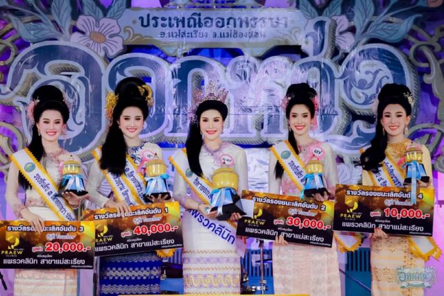 ผลการประกาศผลการประกวด “ธิดาออกหว่า” ประเพณีออกหว่า เทศกาลออกพรรษา อำเภอแม่สะเรียง ประจำปี พ.ศ. 2568 ซึ่งได้รับเกียรติจากนางพิทยา พานทอง นายกกิ่งกาชาดอำเภอแม่สะเรียง นายคำปัน คำประวัน เลขานุการนายกองค์การบริหารส่วนจังหวัดแม่ฮ่องสอน นายวิชัย กองแก้ว นายกเทศมนตรีตำบลเมืองยวมใต้ สงกรานต์สันติกูล นายกองค์การบริหารส่วนตำบลแม่คง ว่าที่ร้อยตรี พูนศักดิ์ ดีมั่น นายกเทศมนตรีตำบลแม่สะเรียง Praew Clinic ร่วมมอบรางวัลขวัญใจ Praew Clinic พร้อมทั้ง Gife Voucher มูลค่า 150,000 บาท อีกจำนวน 5 รางวัล ซึ่งในปีนี้มีสาวงามเข้ารับการประกวดแข่งขัน 17 คน