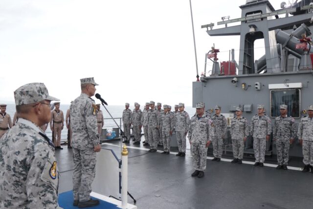เมื่อวันที่ 9 ตุลาคม 2568 พลเรือโท เฉลิมชัย สวนแก้ว ผู้บัญชาการทัพเรือภาคที่ 1 ได้ตรวจเยี่ยมและติดตามสถานการณ์พื้นที่ทางทะเลในเขตรับผิดชอบของทัพเรือภาคที่ 1 โดยนำกำลังทางเรือ ได้แก่ เรือหลวงประจวบคีรีขันธ์ พร้อมเฮลิคอปเตอร์ และเรือตรวจการณ์หมายเลข 265 ออกปฏิบัติภารกิจลาดตระเวนเฝ้าตรวจพื้นที่ทางทะเลของไทย บริเวณเกาะกูด จังหวัดตราด และเส้นแนวเขตเศรษฐกิจจำเพาะไทย–กัมพูชา
