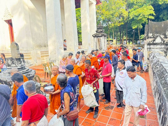 ปทุมธานี“คลื่นมหาชนคนบุญ”ร่วมทำบุญประเพณีตักบาตรพระร้อย รอบอุโบสถเก่าแก่ ๓๕๘ ปี สมัยอยุธยา วัดสิงห์ สามโคก