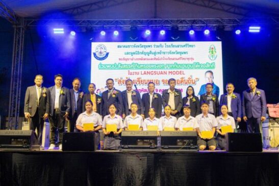 มูลนิธิกตัญญูคืนสู่เหย้าชาวจังหวัดชุมพรจัดพิธีมอบทุนการศึกษา โครงการสนับสนุนการศึกษา 1 อำเภอ 1 ทุน รวม 8 อำเภอ ทุนละ 30,000 บาท