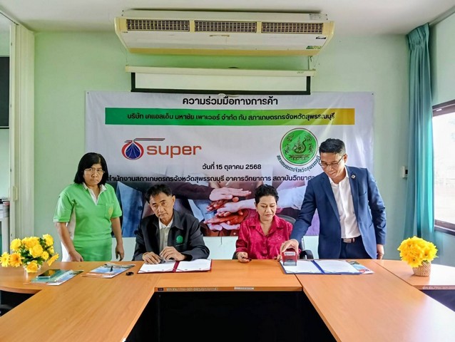 วันนี้วันพุธที่ 15 กันยายน 2568 ฤกษ์ดี นายสงบ สุขสำราญ ประธานสภาเกษตรกรจังหวัดสุพรรณบุรี และบริษัท เคแอลเอ็ม มหาชัย เพาเวอร์ จำกัด โดยคุณกัญษภรณ์ กิจรุ่งจามรเลิศ แบรนด์ SUPER ได้ร่วมมือกันที่จะเปิดพื้นที่ให้ปั๊มน้ำมัน mini super เข้าบริการให้แก่ สมาชิกสภาเกษตรกร ได้ใช้บริการกันอย่างทั่วถึง อันจะส่งผลให้เกษตรกรได้รับความสะดวกมากขึ้นในทุกพื้นที่