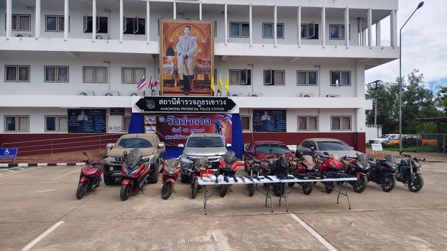 นำโดย พ.ต.ท.พิพัฒน์ พานเพ็ชร์ สว.กก.สืบสวน 3 ร่วมกับ พ.ต.อ.สมชาย ภูกองชนะ ผกก.สภ.เขาวง พร้อมเจ้าหน้าที่ตำรวจสภ.เขาวง และเจ้าหน้าที่ชุดจับกุมแถลงผลการจับกุมตัวตัวนายชลสิทธิ์ (นามสมมุติ)อายุ 27 ปี ที่อยู่ 266 หมู่ 9 ต.สมเด็จ อ.สมเด็จ จ.กาฬสินธุ์ ผู้ต้องหาตามหมายจับของ ศาลจังหวัดกาฬสินธุ์ ที่ 387/2568 ลงวันที่ 28 สิงหาคม 2568 พร้อมของกลางเป็นรถยนต์ 4 คัน รถจักรยานยนต์ 12 คัน.มูลค่ารวมประมาณ 6 ล้านบาท