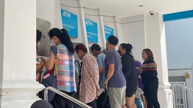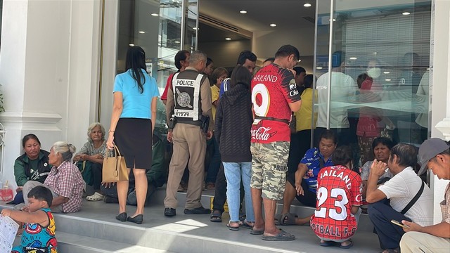 14.30 น. ผู้ประกอบการร้านค้าที่เข้าร่วมโครงการคนละครึ่งพลัส มาติดต่อขอใช้บริการที่ธนาคารกรุงไทย สาขาอ่างทอง ตั้งแต่ช่วงสายวันนี้ จนถึงปัจจุบัน ทำให้ท้ายแถวล้นออกมานอกตัวอาคารสำนักงานธนาคารกรุงไทย สาขาอ่างทอง