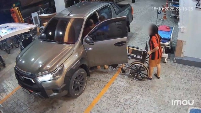เวลา 23.16 น.ขณะเคลื่อนผู้ป่วยฉุกเฉินวิกฤตออกจากห้องฉุกเฉินเพื่อขึ้นรถพยาบาล พบว่า มีรถ