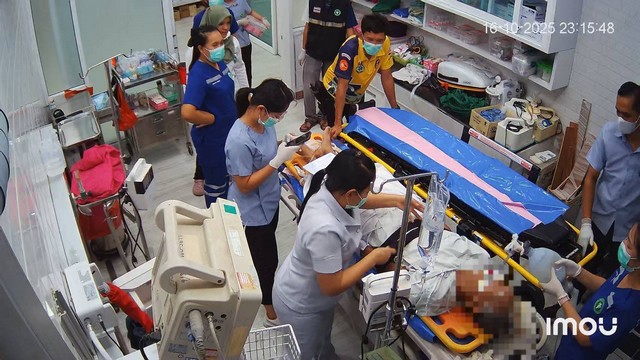 เตรียมส่งต่อไปโรงพยาบาลกระบี่ ให้รอสักครู่ และให้ญาติเข็นผู้ป่วยไปนอนบนเตียง จากนั้นพยาบาลหัวหน้า