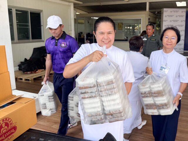 วันที่ 20 ตุลาคม 2568 ที่ศูนย์สื่อมวลชน วัดพระธรรมกาย อำเภอคลองหลวง จังหวัดปทุมธานี พระครูวิบูลนิติธรรม (ไพบูลย์ ธมฺมวิปุโล) ผู้ช่วยเจ้าอาวาสวัดพระธรรมกาย ประธานกรรมการฝ่ายสาธารณสงเคราะห์ วัดพระธรรมกาย ส่งมอบอาหารปรุงสุกใหม่ ขนมปัง และน้ำดื่ม จำนวน 1,300 ชุด พร้อมชุดเครื่องดื่มร้อน-เย็นและขนมปัง จำนวน 500 ชุด รวมอาหารกว่า 1,800 ชุด แก่ พล.ต.ต.จักรเพชร เพชรพลอยนิล ผู้บังคับการตำรวจตระเวนชายแดนภาค 1 และคณะผู้บริหาร ประกอบด้วย พ.ต.อ.เทวินทร์ ขุนแก้ว, พ.ต.อ.ทวีศักดิ์ จินดาศักดิ์ และ พ.ต.อ.ณัฐวรรธฐ์ ภูวัฒนติกานต์ รองผู้บังคับการตำรวจตระเวนชายแดนภาค 1