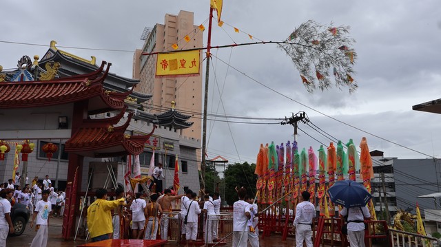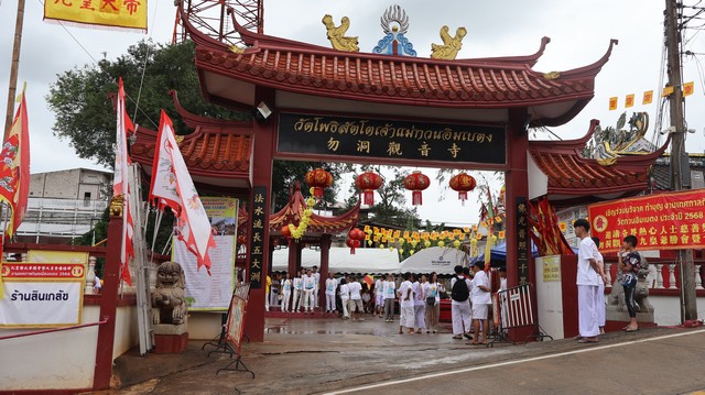 สำหรับงานเทศกาลกินเจของวัดโพธิสัตโตเจ้าแม่กวนอิมเบตง ก่อนที่จะมีพิธีเปิด ก็ได้มีการยกเสาโกเต้ง เชิญไฟศักดิ์สิทธิ์แห่ไปรอบเมืองเบตง โดยมีม้าทรง ประชาชน แต่งชุดขาว ขบวนมังกร สิงโต ร่วมแห่ในขบวน และมีพิธีขออนุญาต เทพเจ้า สิ่งศักดิ์สิทธิ์ ที่คอยปกปักรักษาเมืองเบตงในการจัดงานเทศกาลกินเจ ตรงบริเวณหอนาฬิกา ใจกลางเมืองเบตง ก่อนที่จะเชิญไฟที่อยู่ในตะเกียง ขึ้นไปแขวนอยู่บนเสาโกเต้ง ซึ่งจะถือว่าเทศกาลกินเจได้เริ่มขึ้นโดยสมบูรณ์แล้ว