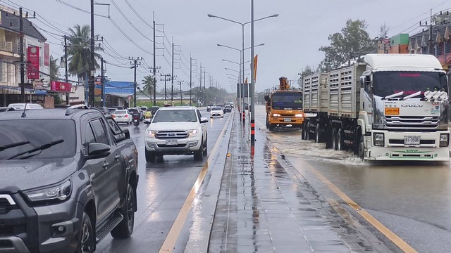 เมื่อวันที่ 21 ต.ค. 68 ผู้สื่อข่าวรายงาน หลังจากที่เกิดฝนตกอย่างต่อเนื่องตลอดทั้งคืนที่ผ่านมา ในหลายพื้นที่ของจังหวัดพังงา ทำให้น้ำจากเขาวง ต.คึกคัก อ.ตะกั่วป่า จ.พังงา หลากท่วมหลายพื้นที่ น้ำได้ไหลเข้าท่วม ทางหลวงหมายเลข 4 ถนนเพชรเกษมตะกั่วป่า-ท้ายเหมือง มีน้ำท่วมขัง ความสูง 40 เซนติเมตร น้ำไหลไม่ทัน บริเวณหน้าตลาดสดบางเนียง ช่วงโค้งจอยการยาง หน้าอนุสรณ์สถานสึนามิเรือ ต.813 จนถึงซอย นายเท่ง